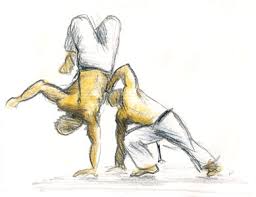 Alkisah, pada abad ke-16, di sebuah kawasan bernama Angola, Afrika, hidup sekumpulan budak yang dijajah orang Portugis. Mereka hidup menderita di bawah tekanan majikan. Ancaman hukuman gantung dan cambuk membayangi nasib mereka. Akan tetapi, semangat perjuangan mereka tetap menyala. Diam-diam mereka melawan. Mereka berhasil menciptakan jurus bela diri baru: capoeira.Capoeira diciptakan berkat kecerdikan budak Angola mengecoh majikan mereka. Keganasan capoeira ditutupi dengan gaya bela diri yang seindah tarian dan disertai nyanyian khas. Tendangan memutar dan melompat yang dilakukan mampu memesona orang-orang yang menyaksikan. Bahkan, dua orang yang sedang latihan bertarung justru terlihat seperti pasangan yang sedang menari. Capoeira semakin berkembang ketika budak-budak Angola tersebar hingga ke Brasil.Itu adalah satu teori mengenai lahirnya capoeira. Teori lain yang lebih mendapat dukungan adalah bahwa capoeira lahir di Brasil, diciptakan oleh budak-budak yang berasal dari berbagai kawasan di Afrika, antara lain orang Yoruba, Bantu, Angola, Kongo, dan Mozambik. Ahli-ahli sejarah capoeira lebih mendukung teori ini karena yang ada di Afrika hanyalah sebagian unsur yang terpisah-pisah dari seni itu, bukan bentuknya secara keseluruhan. Dari sintesis tarian, pertarungan dan alat musik dari berbagai kebudayaan Afrika yang berbeda oleh para budak itu terciptalah capoeira.Seiring perkembangan waktu, Capoeira mulai dikenal sebagai bela diri yang agresif. Kebrutalan capoeira makin parah sejak terjadi pembebasan budak pada tahun 1888. Banyak bekas budak miskin yang menganggur kemudian membentuk geng capoeira untuk berbuat kejahatan. Ini membuat Pemerintah Brasil berang dan melarang olahraga ini pada tahun 1892. Mereka yang ketahuan berlatih atau mengajarkan bela diri tersebut akan dihukum berat. Hukumannya berupa pemotongan otot, lutut, bahkan tenggorokan.Akan tetapi, riwayat capoeira belum berakhir. Banyak pejuang capoeira yang tetap setia dan berlatih secara sembunyi-sembunyi. Akhirnya, pada tahun 1937, Getulio Vargas, Presiden Brasil pada masa itu, setuju mencabut larangan capoeira. Beliau malah ingin mempromosikan capoeira sebagai olahraga khas Brasil.